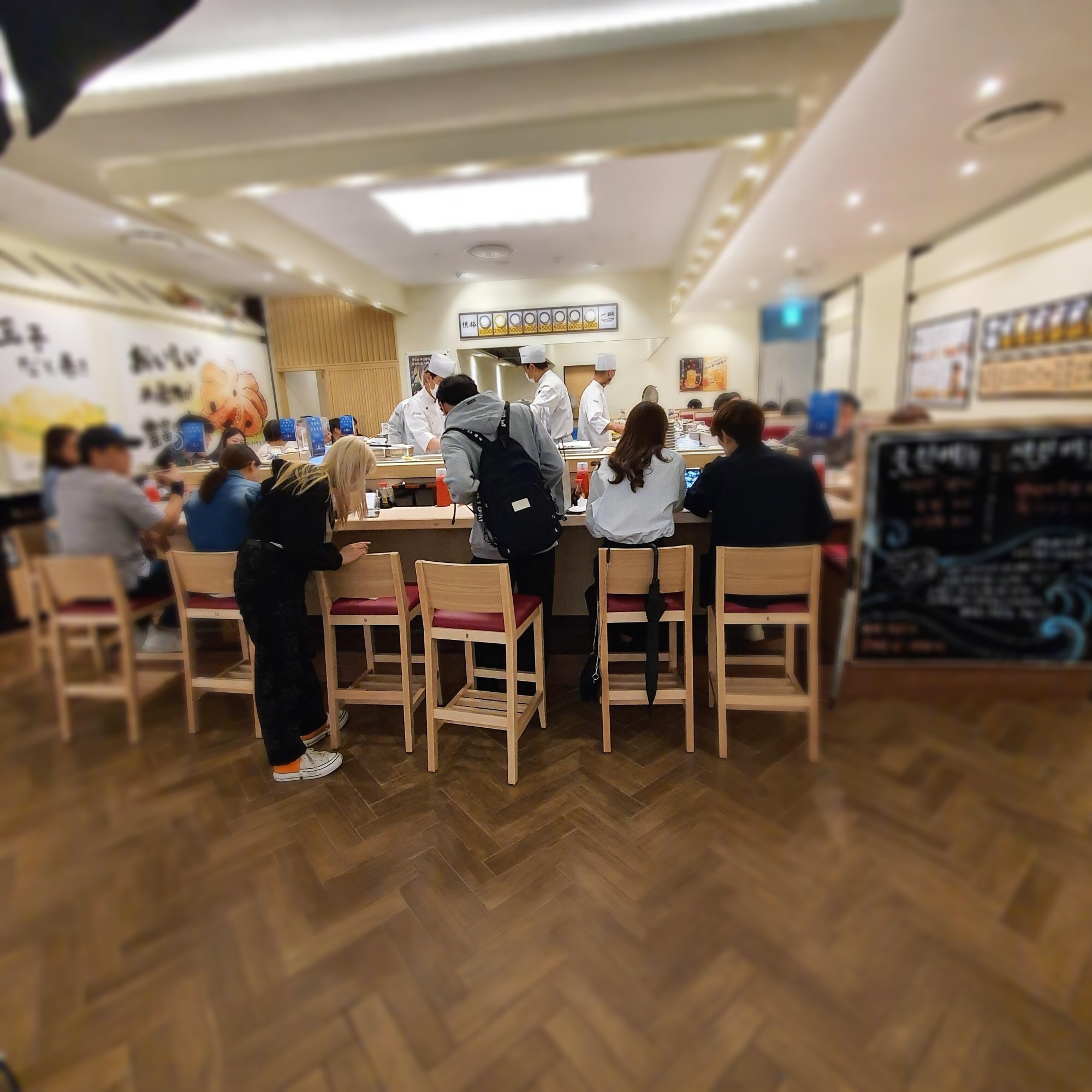 회전초밥 특유의 바테이블과 식탁이 같이 있는데, 사람이 워낙 많아서 고를 수는 없었습니다.
