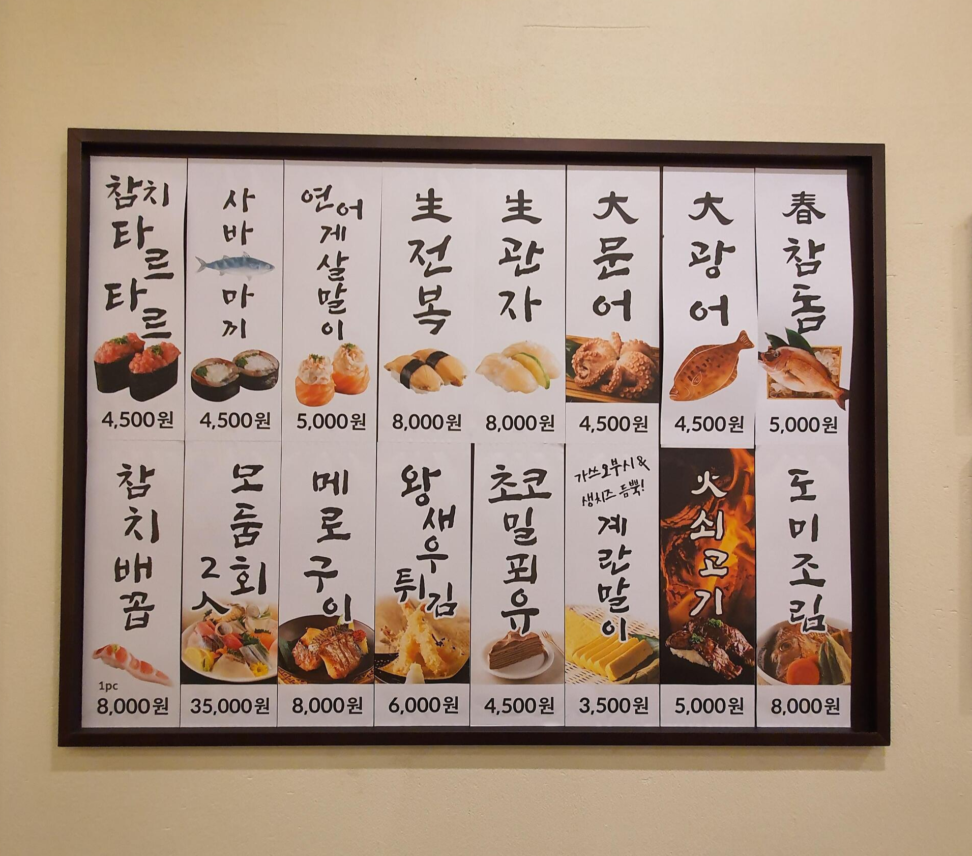 시마스시 메뉴판을 찍어봤습니다 ㅎㅎ